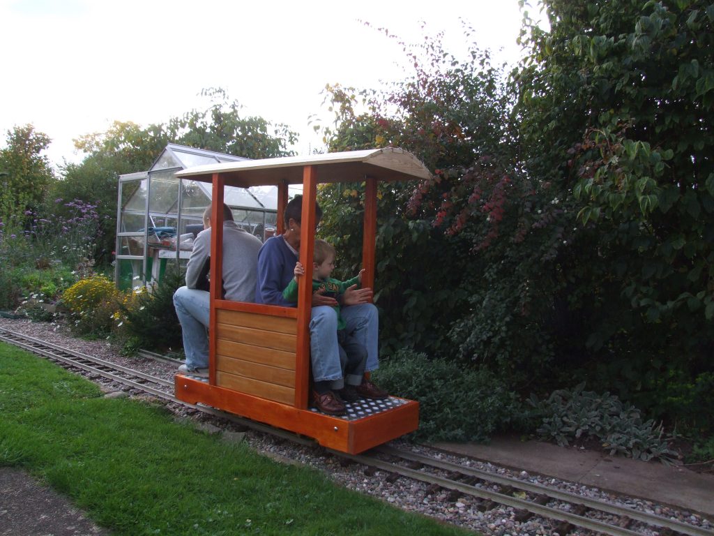 The design criteria were that it should be large enough for adults to sit in, have a short wheel base to negotiate tight curves and be heavy towards the rear so that when an adult stepped on the footplate it didn’t lift off the track.
